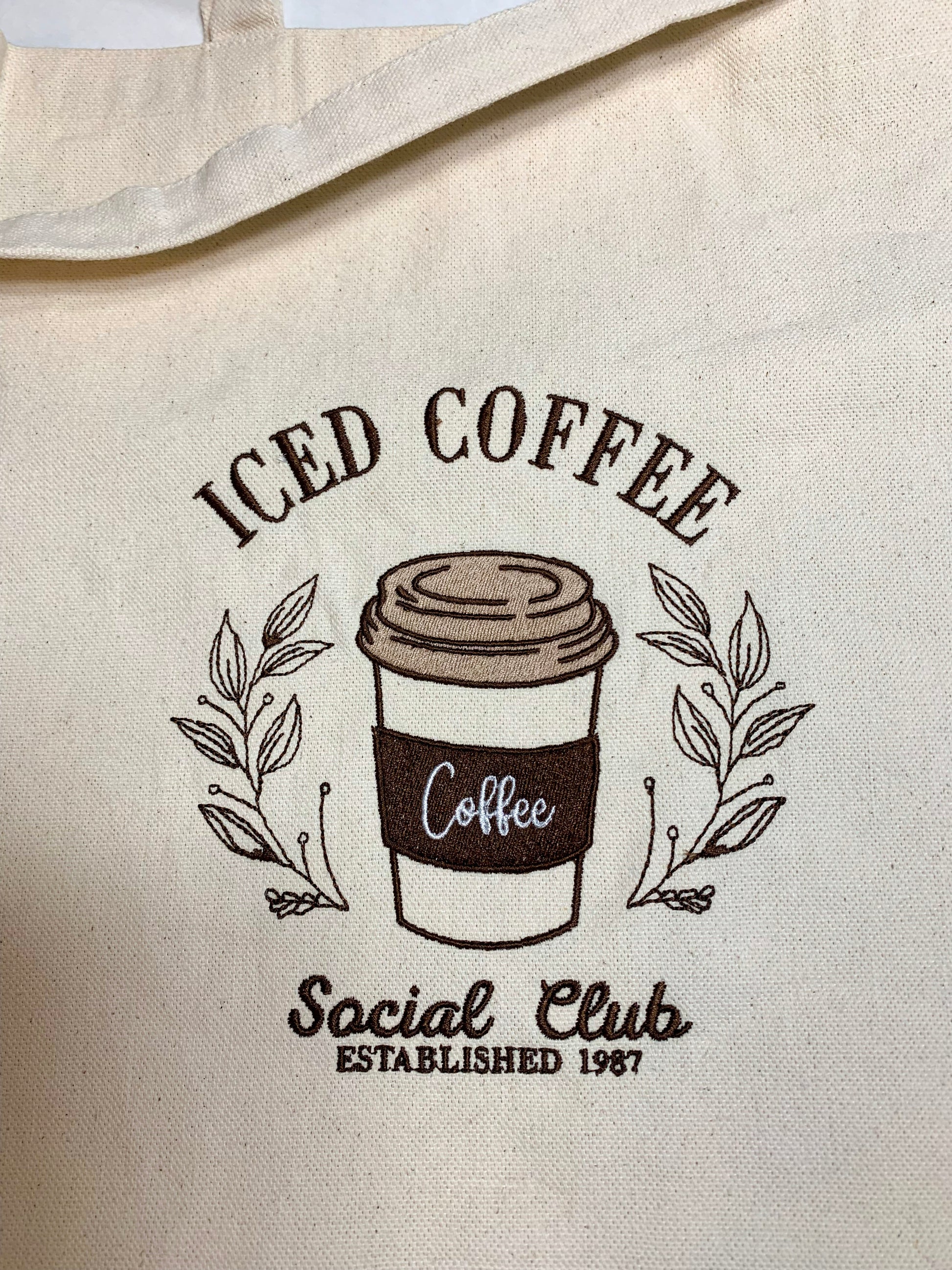 Join the club with the Iced Coffee Social Club tote bag! Show off your love for all things iced coffee while staying organized and stylish. This embroidered canvas tote is perfect for carrying your daily essentials and also makes a great gift for any fellow iced coffee enthusiasts.